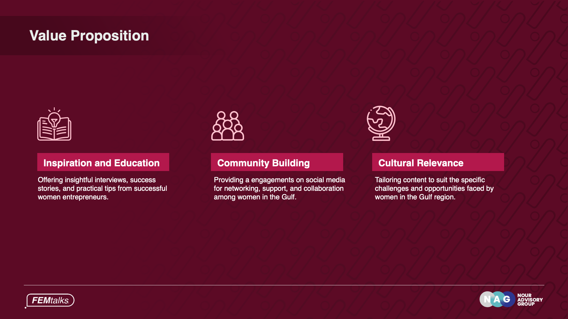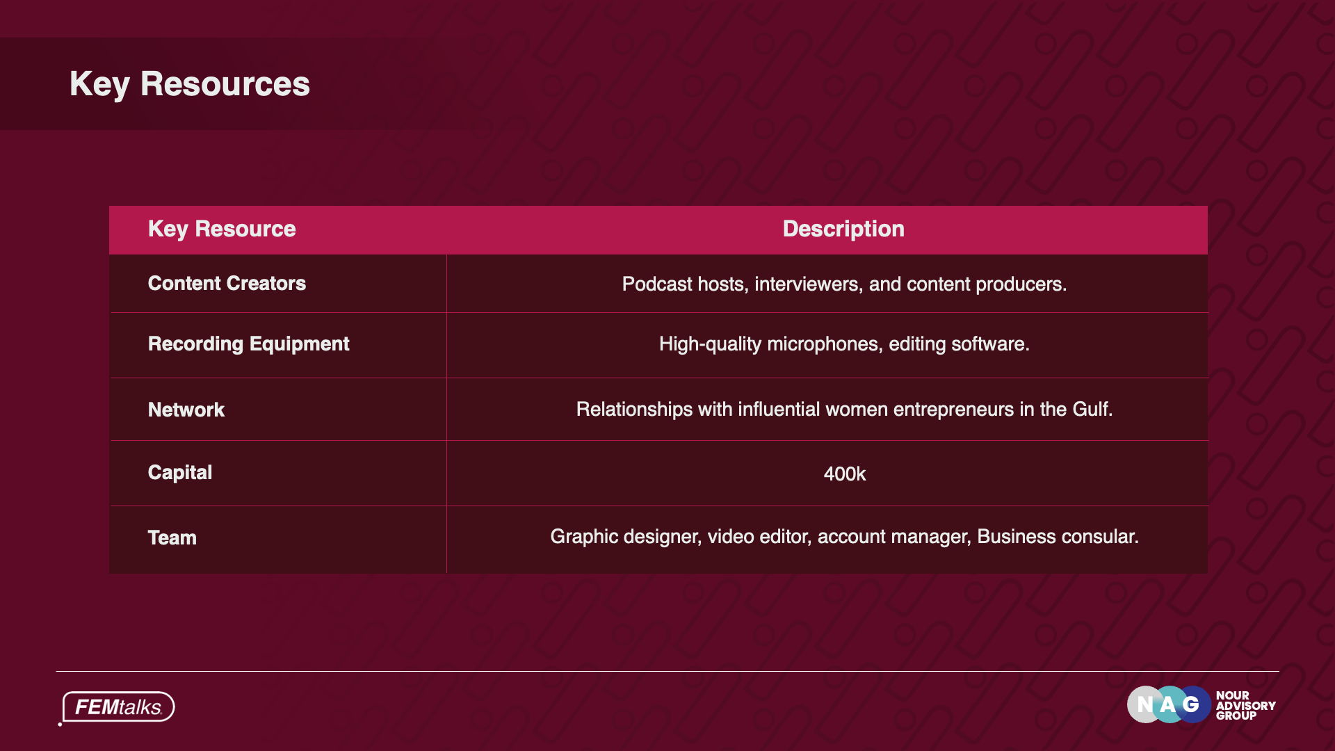 FEMtalks is more than a podcast—it’s a movement empowering women entrepreneur across the Gulf. For their business plan, we designed a presentation that blends bold visuals with actionable insights,…