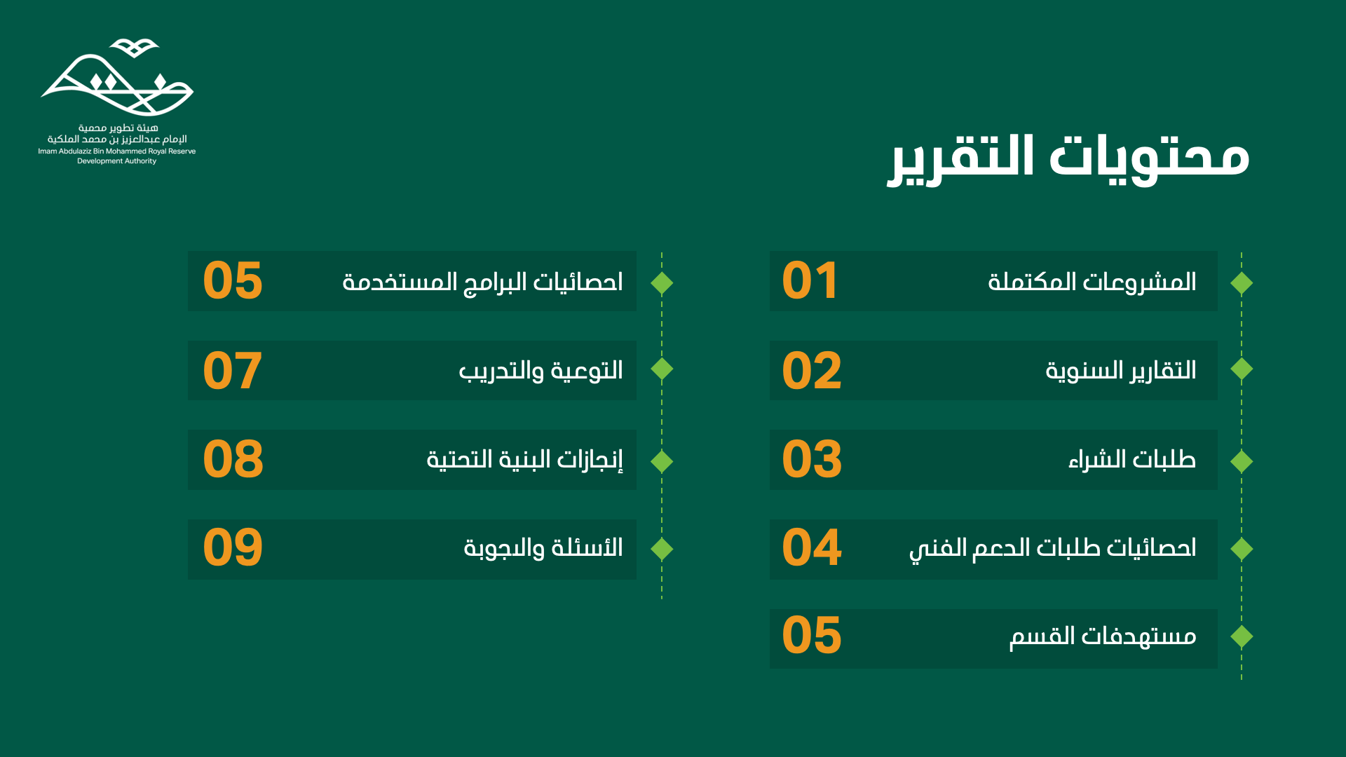The yearly IT report of the Royal Reserve tells a narrative of how technology protects Saudi Arabia's natural and cultural legacy rather than only figures. For this presentation, we transformed dense data into a clear narrative. Every slide ties tech to impact—like how IT protects ecosystems or boosts transparency. Clear and concise, with measurable improvement.